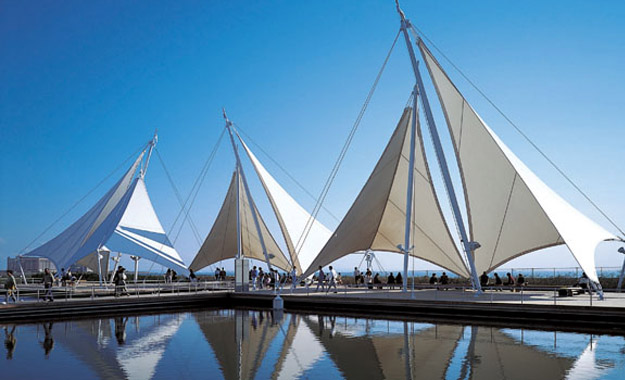 應(yīng)用,使膜結(jié)構(gòu)抵御風(fēng)雨的能力是一般雨蓬
